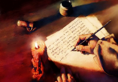 Observei o lugar, era dia, e alguma luminosidade entrava por janelas muito altas do chão, pareciam apenas a falta de uma pedra, um buraco. O lugar era mobiliado por poucos móveis simples e rústicos. Uma cama que parecia não ter colchão, ou era muito fino, um bidê ao lado da cama e uma mesa com o tampo inclinado, como uma mesa de desenho. Não havia ninguém no quarto, então fui entrando e fui até a mesa. Havia vários manuscritos, um tinteiro e uma pena, em um deles uma poesia inacabada que comecei a ler...